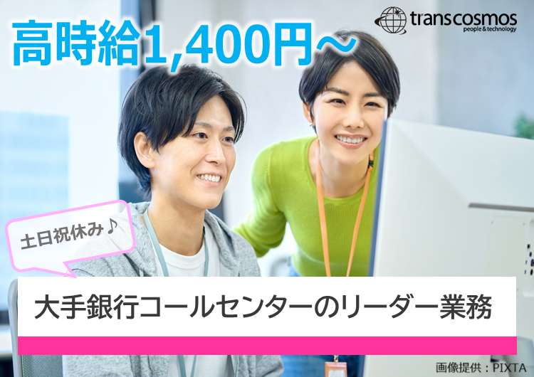 【オープニング★高時給1,400円~×土日祝休み】大手銀行インターネットバンキングのお問い合わせ窓口でのリーダー【大通駅】