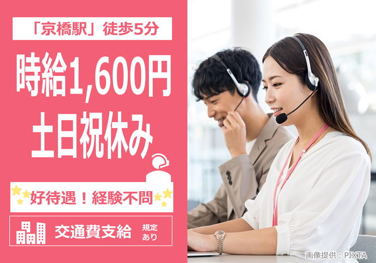 【土日祝休み×時給1600円】大手カード会社コールセンター/ノルマなし&クレーム少なめ!安定して働きたい方にピッタリ♪<京橋駅>