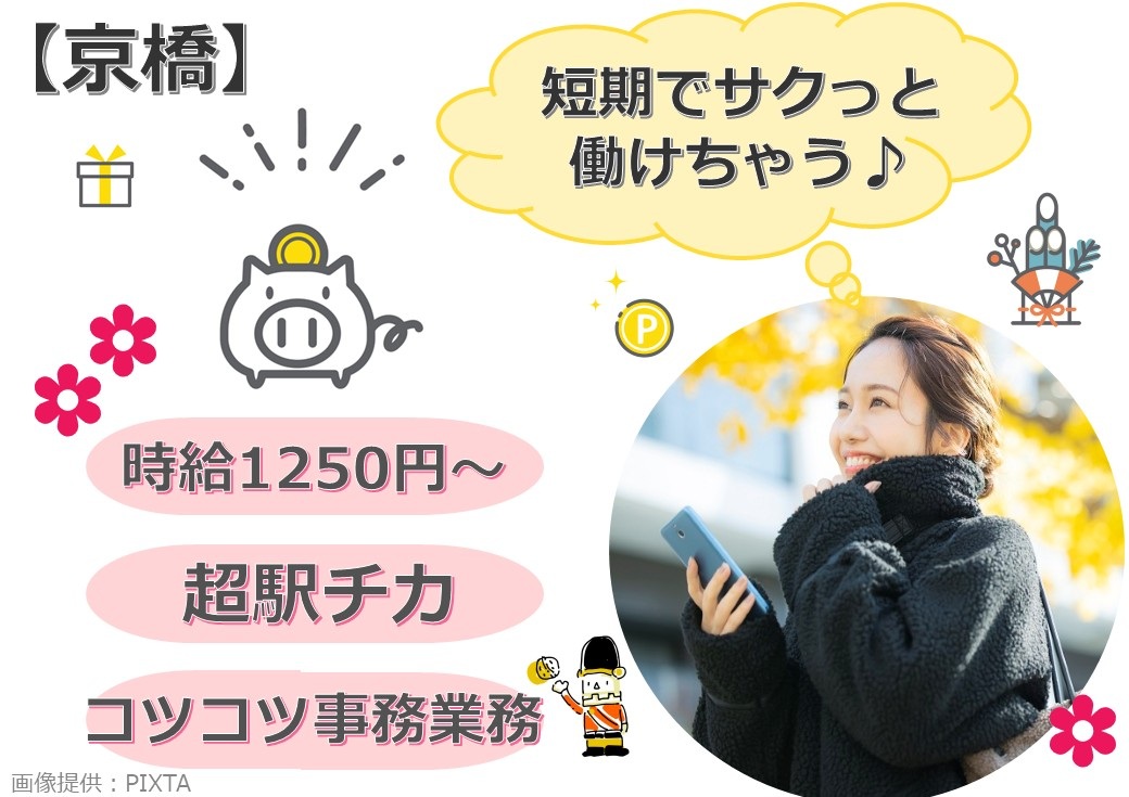 短期業務!4月末まで★コツコツ作業が好きな方必見!電話対応一切無し!|大手通信会社の事務のお仕事【京橋】