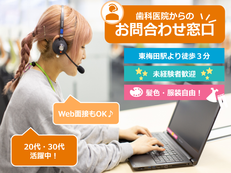 <1月入社>週3日~/土日祝休み/時給1400円/歯科医院からのお問合せ対応【梅田】