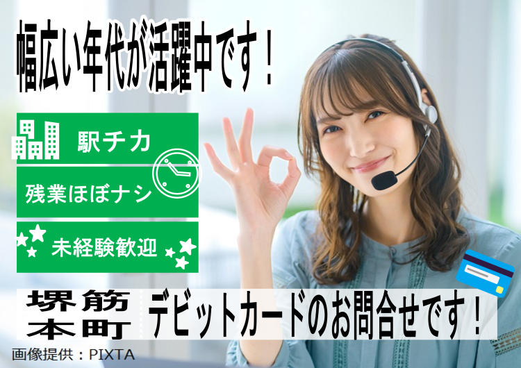 ★オフィス経験問わず!接客経験しかない!でも大丈夫★「あるある」なカードの電話とチャットのお問合せ対応★オフィスカジュアルOK★【備後町】