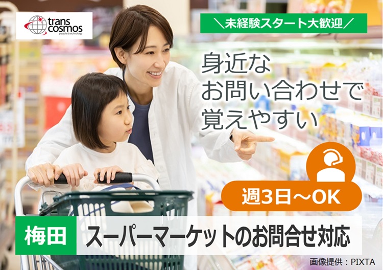 \土日祝は時給UP♪/ 週3日~OK|未経験OK◎スーパーマーケットの問合せ受付コールセンター【梅田】