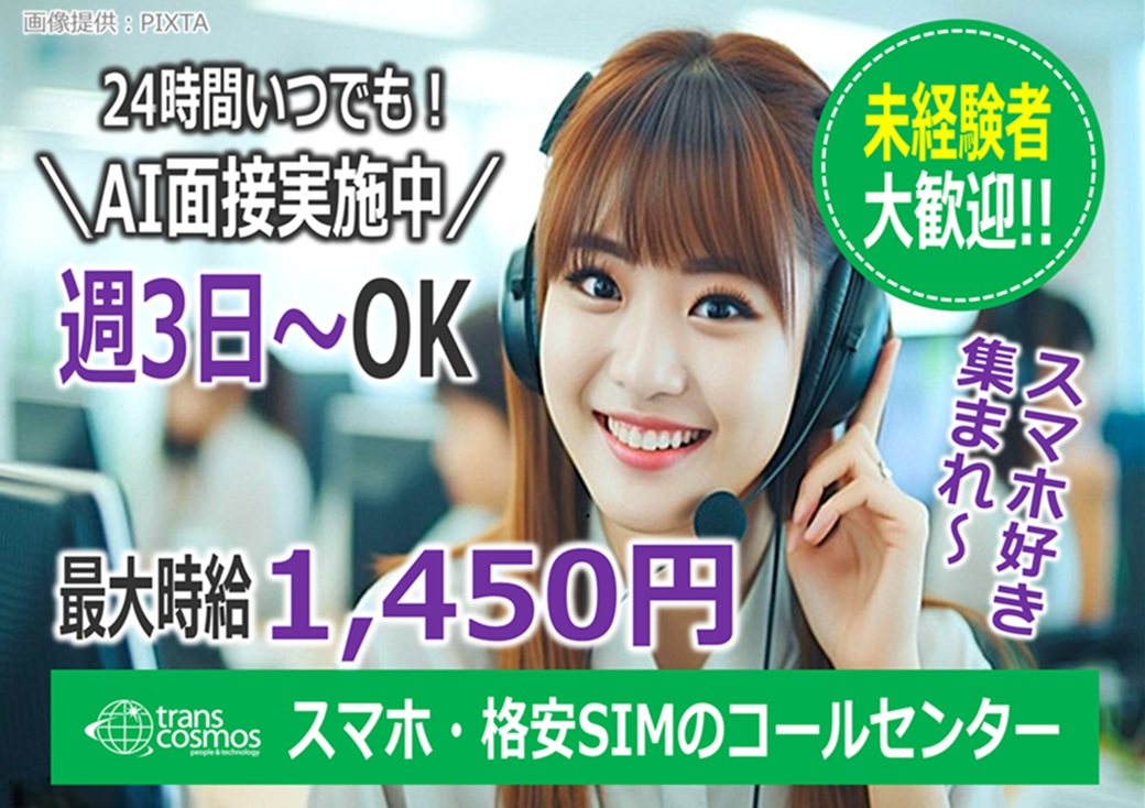 <24時間対応!AI面接実施中>週3日~気軽にスタート◎スマホ・格安SIMの問合せ対応【和歌山市】