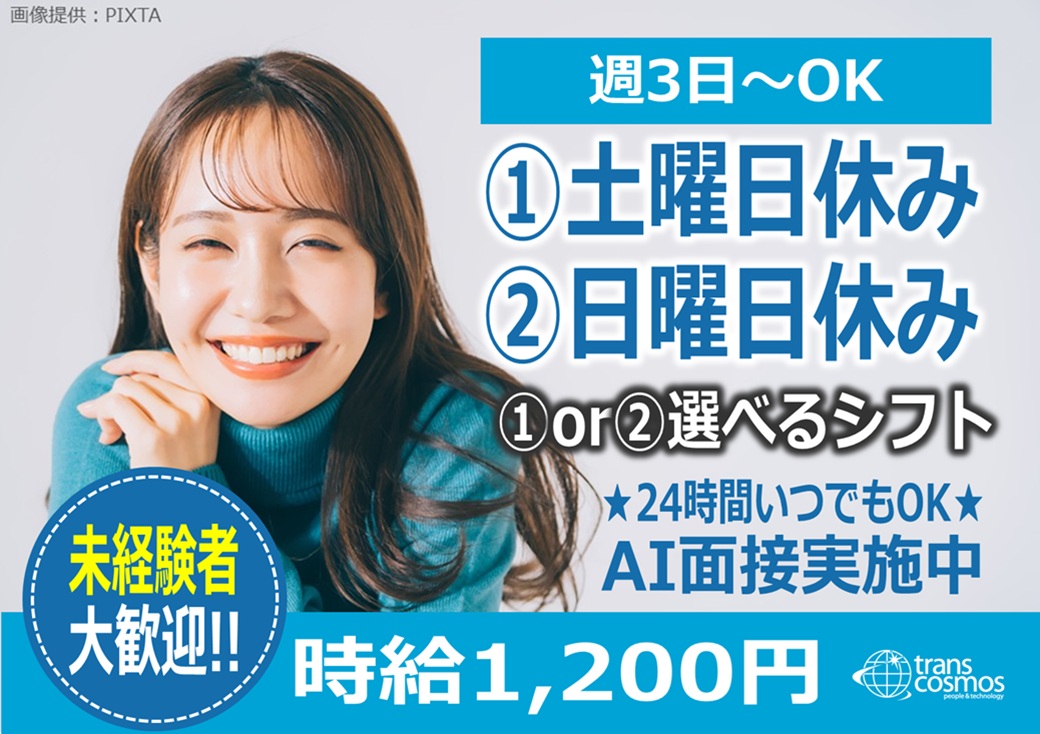 「日曜+祝日」or「土曜+日曜」に働きたい方★平日休みでプライベート充実♪スマホ相談窓口スタッフ【和歌山市】