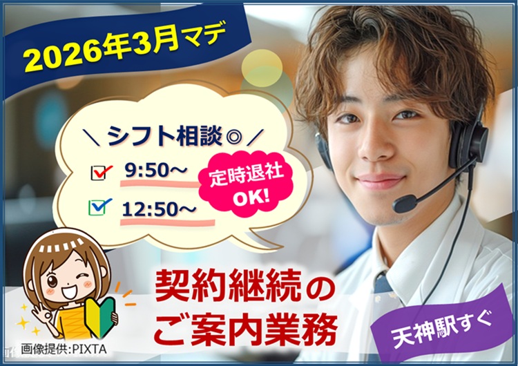 2026年3月迄!9:50 or 12:50出社◎未経験者◎卒業前の社会勉強にも◎電話対応 天神