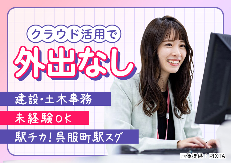 専用ツールやクラウドを活用!建設系事務【外出なし・電話対応ほぼなし】呉服町