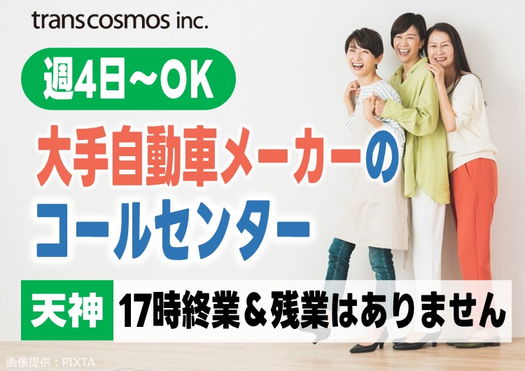 【天神駅チカ2分】大手自動車メーカーのお問合せ受付|未経験OK!手厚い研修で安心スタート♪(週4~OK)