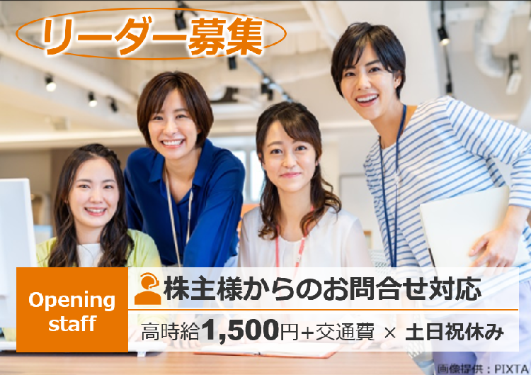 4月or5月入社|オープニングスタッフ|三井住友信託銀行のコールセンター|リーダー候補|時給1500円|土日祝休み【博多駅】
