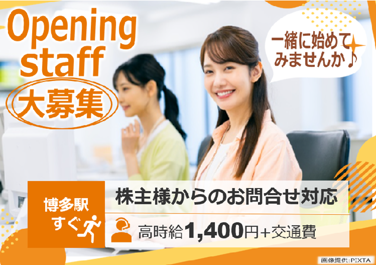 4月or5月入社|オープニング15名大募集|土日祝休み|高時給|三井住友信託銀行のコールセンター|博多駅スグ|
