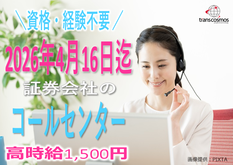 【2026年4月16日迄の短期業務!高時給1500円★】土日祝休み・大手証券会社の短期コールセンター【大通駅】