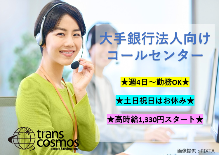 【週4日~勤務OK×高時給1,330円スタート★】大手銀行のお問い合わせ対応【札幌駅】