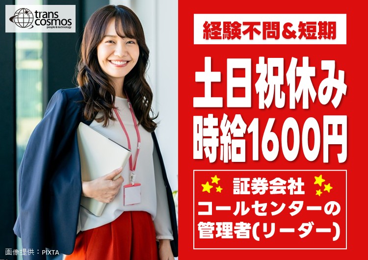 【6月末まで】高時給1600円!証券会社コールセンターの管理者(リーダー)【大通駅】