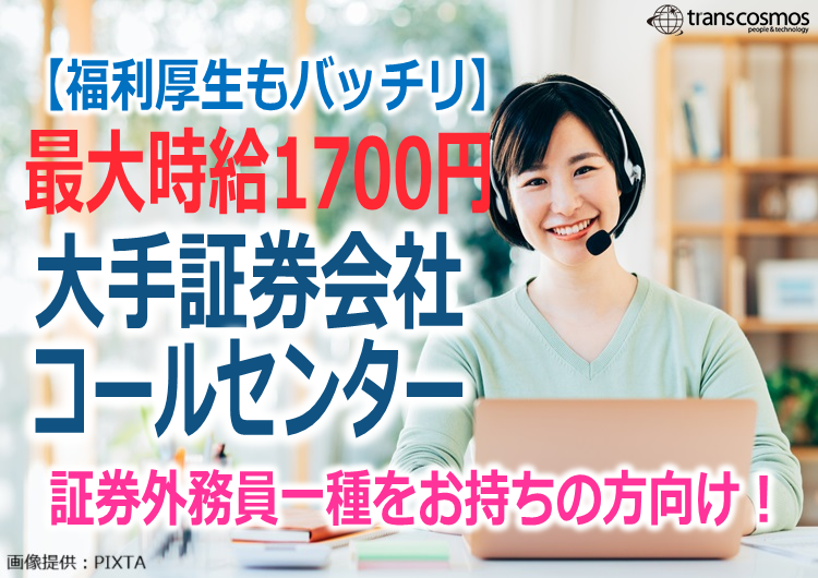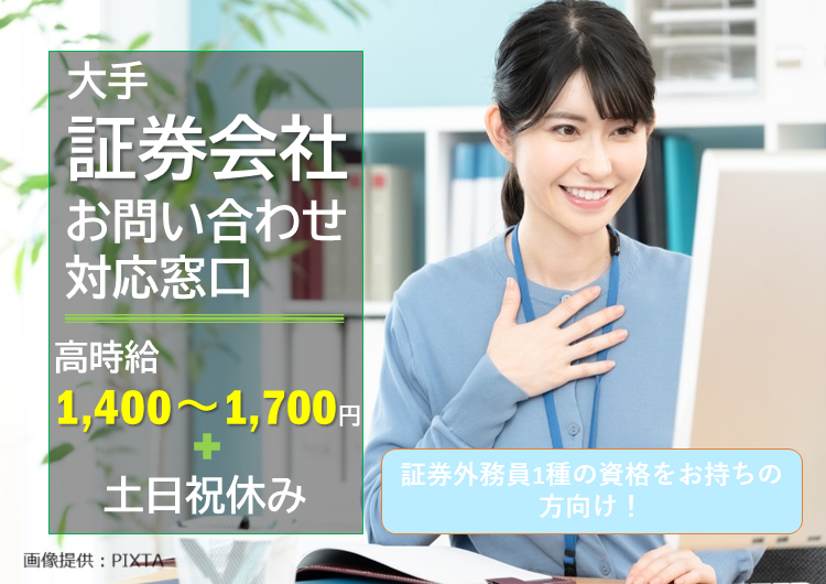 【証券外務員一種保有者向け】祝い金あり!大手証券会社コールセンターでのお問い合わせ対応【札幌駅】