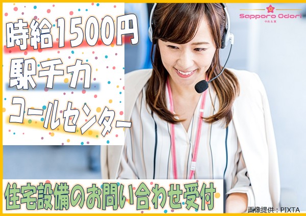 <時給1500円×入社日相談OK♪>住宅設備のお問い合わせ受付【大通駅】