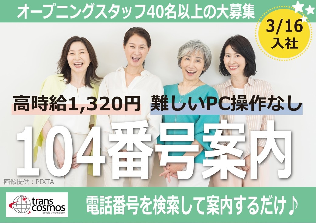 【オープニング】電話番号案内のオペレーター/高時給/選べる時間・曜日/週4~OK/仙台駅東口すぐ