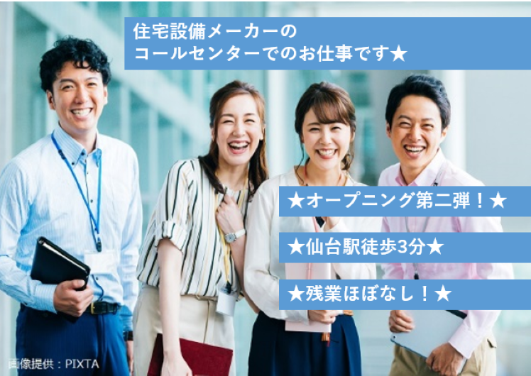 未経験歓迎! 住宅設備商品のメンテナンス相談&修理受付 仙台駅徒歩3分