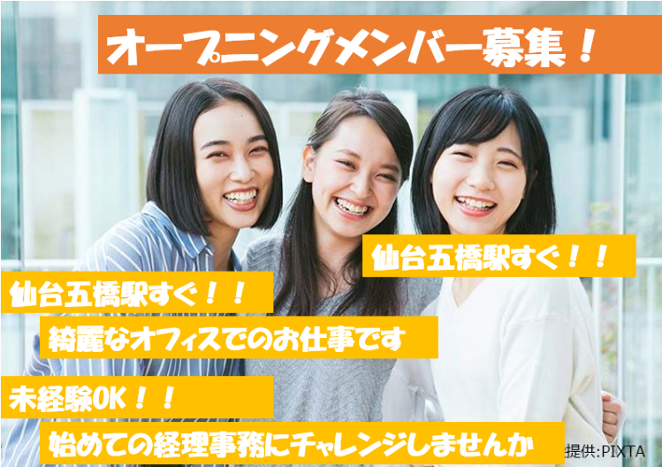 仙台・五橋駅 /電話応対なし!オープニングメンバー募集・未経験OKの経理事務★