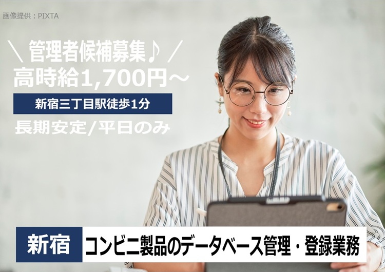 \業務拡大★リーダー候補募集!/コンビニ製品のデーターベース管理・登録事務@新宿三丁目