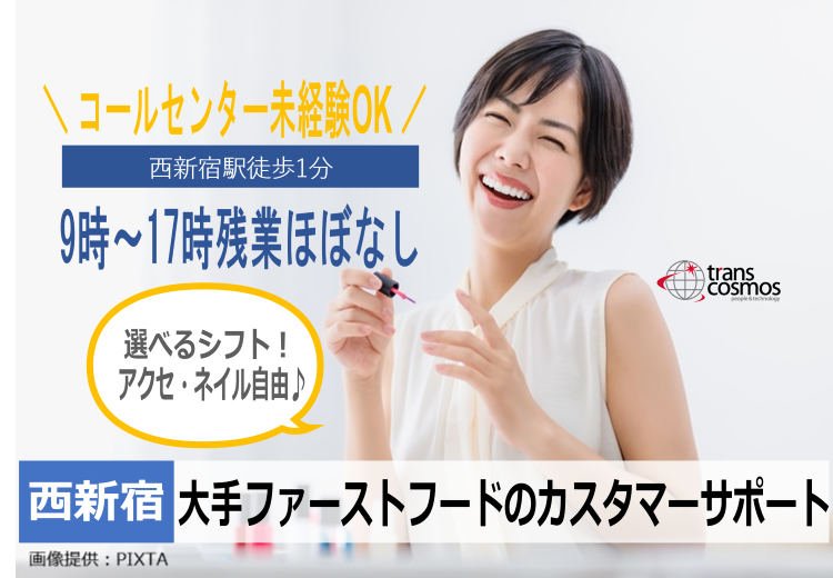 \土日祝日100円UP|服装自由|未経験OKの大手ファーストフードのカスタマーサポート@西新宿