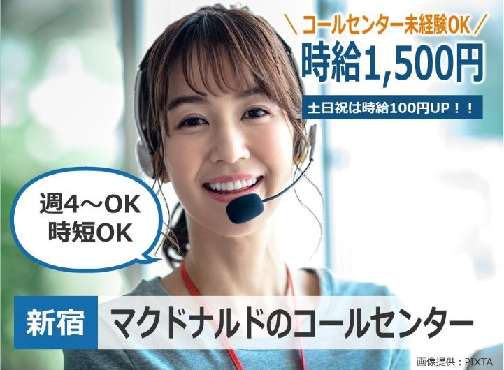 \時給1,500円土日祝日100円UP/服装自由|マクドナルドのカスタマーサポート@西新宿