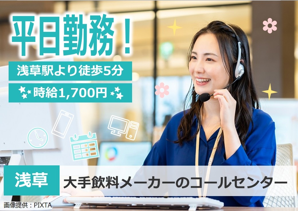 \浅草駅徒歩5分!平日のみ!/大手飲料メーカーの問合せ対応業務@浅草/本所吾妻橋