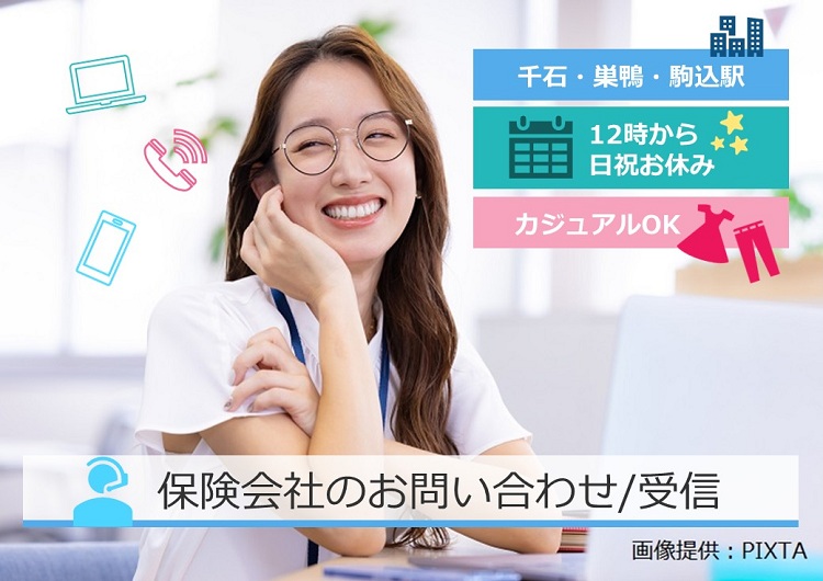12時~のお仕事◎カジュアルOK♪評価制度により時給1,700円以上も目指せる★保険会社のお問い合わせ@千石/巣鴨/駒込
