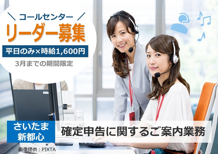 期間限定のお仕事!!\オープニング×経験が活かせる◎/確定申告に関するご案内窓口(リーダー)@さいたま 新都⼼