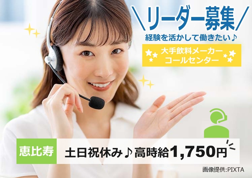 \土日祝休み!安定の長期レギュラーワーク♪/大手飲料メーカーお客様センター窓口でのリーダー業務@恵比寿