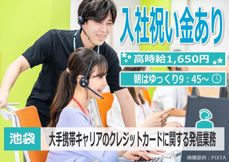 \入社祝い金5万円♪/大手携帯キャリアのクレジットカードに関する発信業務@池袋