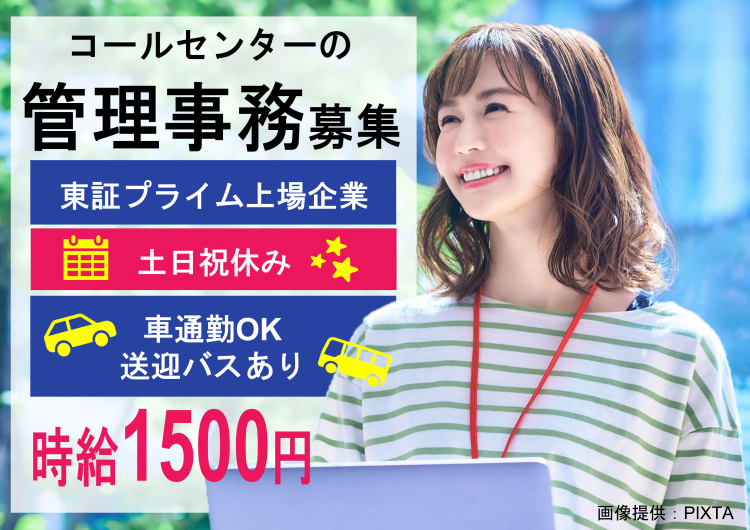 車通勤OK! 送迎バスあり! 完全土日祝休み♪ 事務経験が活かせる!コールセンターの 管理事務 のお仕事(豊田市篠原町)