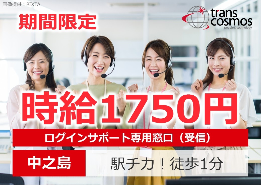 <オープニング!>期間限定|高時給1750円|ログインサポート専用窓口(受信)【中之島】