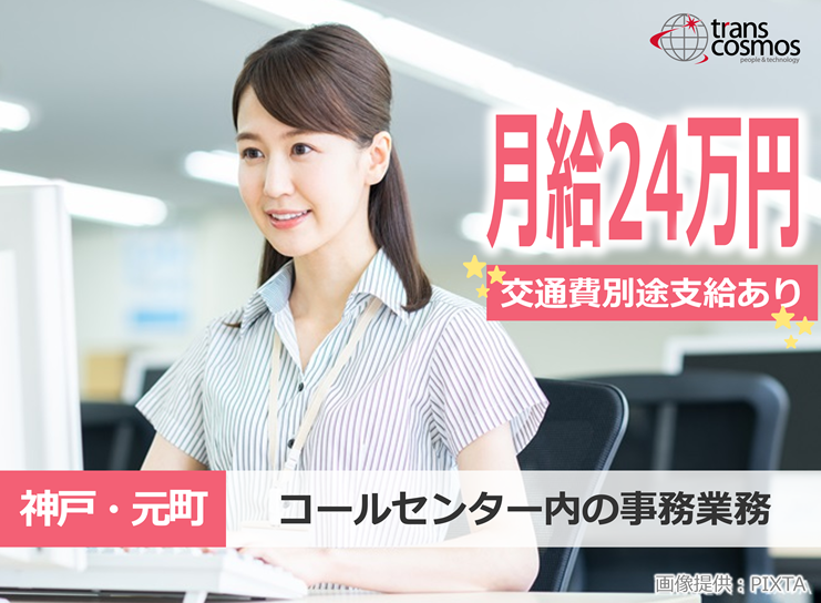 【土日祝休み/私服でOK】Excelを使ってコールセンター運営を支える事務スタッフ募集!〈神戸・三ノ宮〉