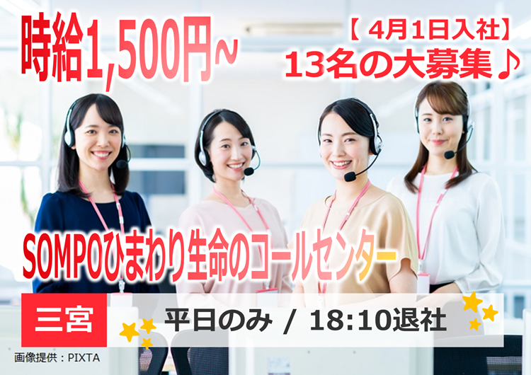 【4月入社】2ヶ月の研修で安心スタート!SOMPOひまわり生命のコールセンター(受信)【神戸】