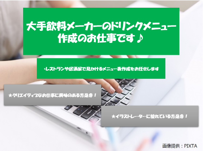 ★ドリンクメニューデザインのお仕事★ 土日祝休み 肥後橋駅/淀屋橋駅