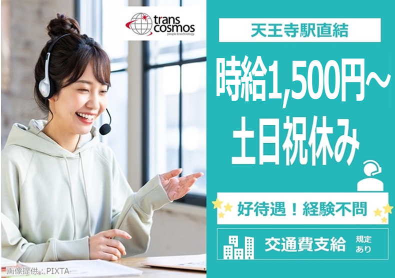 新年1月start/時給1,500円★土日祝休/電力会社のコールセンター【天王寺】