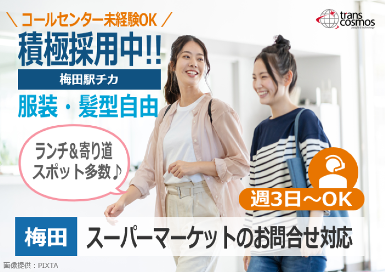 週3日~OK|服装・髪型自由|未経験OK◎スーパーマーケットに関するお問い合わせ対応【梅田】