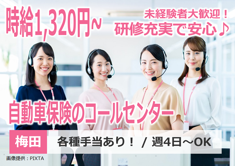 《11月入社》未経験歓迎!シフト固定OK♪自動車保険のお問合せ窓口【梅田】