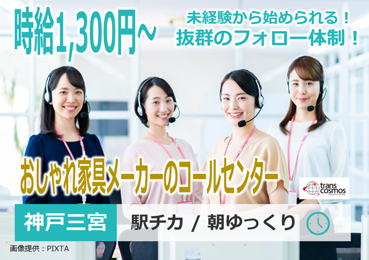 朝ゆっくり出社♪9:50~スタート//週4~勤務OK//インテリア・家具に関するお電話窓口【神戸三宮】