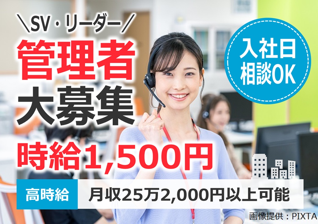リーダー・SV募集!高時給1500円!インフォメーションセンター総合案内のコールセンター【和歌山市】