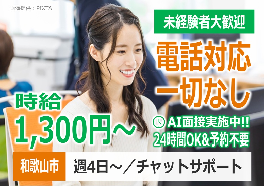 <夕方までで帰れる!>週4日~OK★服装・髪型自由♪チャット&電話対応スタッフ【和歌山市】