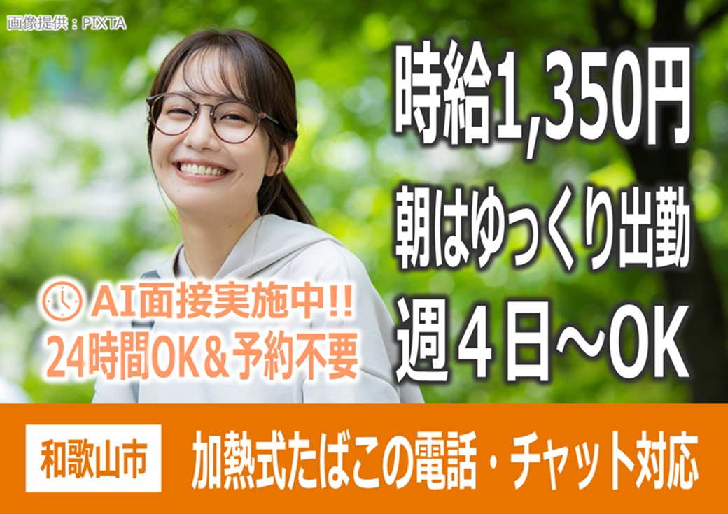 【朝はのんびり出勤】週4日~OK!オシャレ自由!加熱式たばこの電話&チャット対応@和歌山市
