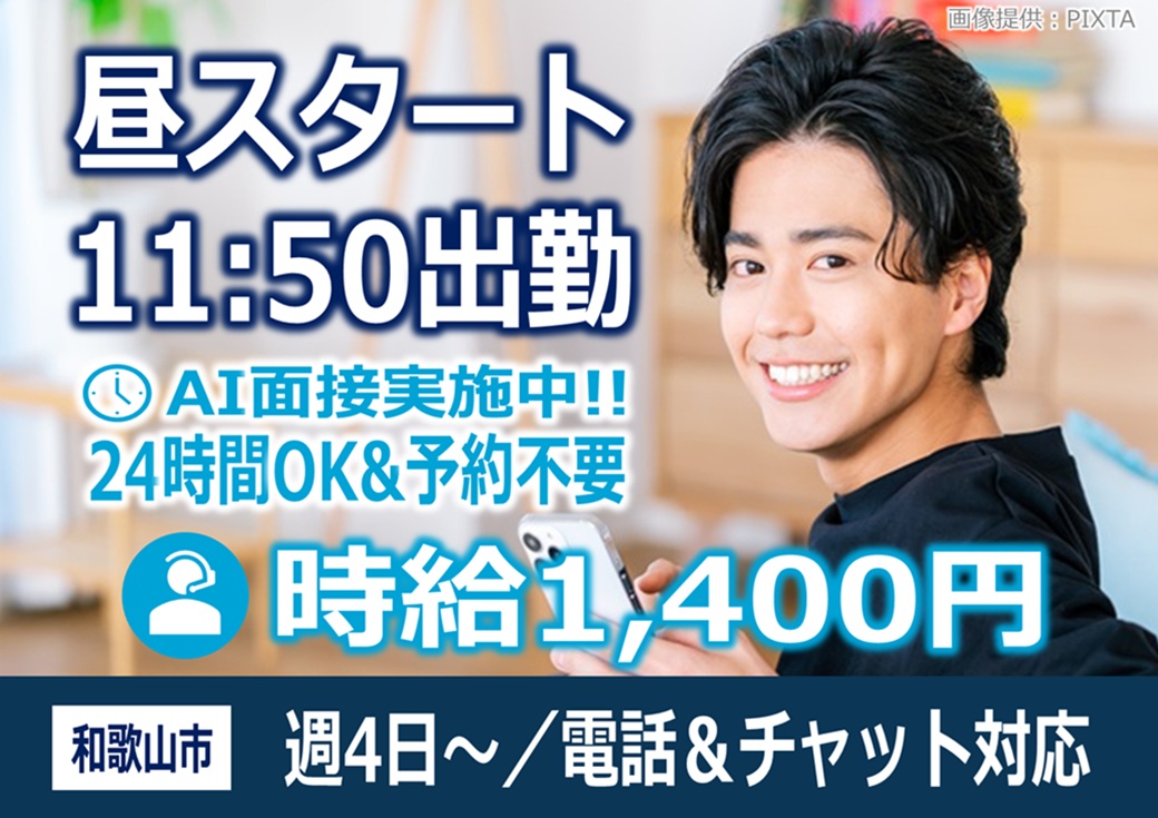 朝はゆっくり自分時間!お昼からスタート★時給1400円&服装自由♪チャット&電話対応@和歌山市