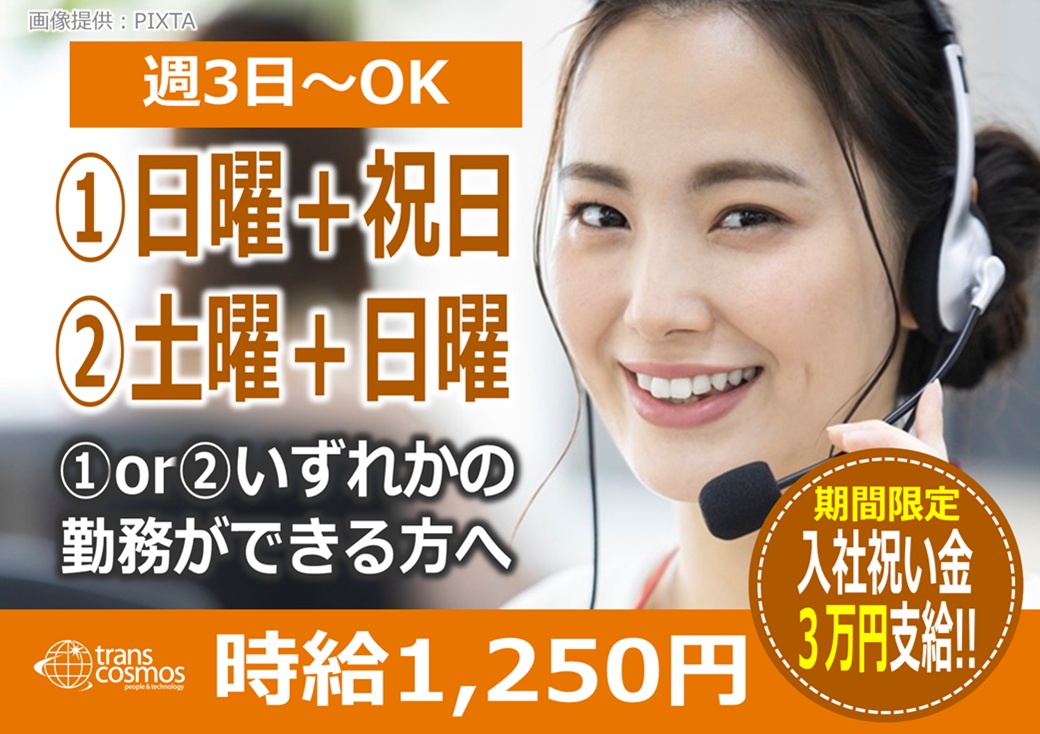 「日曜+祝日」or「土曜+日曜」に勤務できる方★平日休みでプライベート充実♪スマホ相談窓口スタッフ【和歌山市】