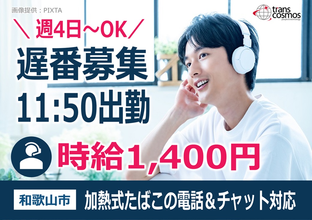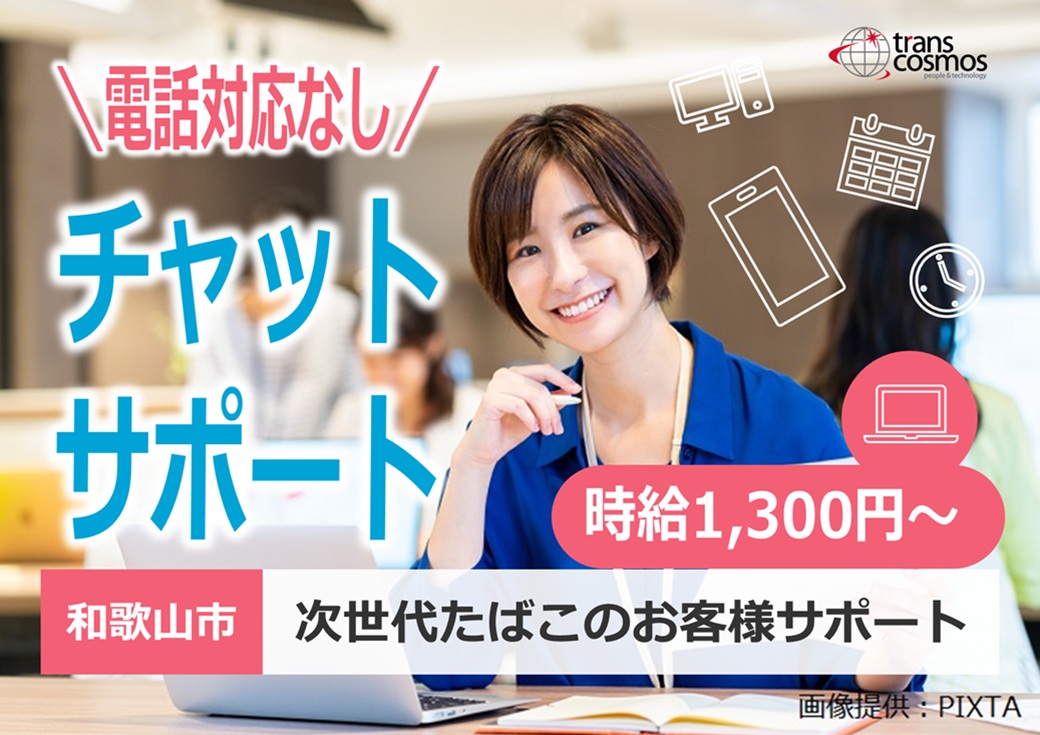 <高時給>週4日~OK/朝はゆっくり出勤/加熱式たばこに関するチャットサポート・電話対応【和歌山市】
