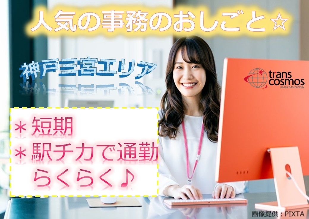 短期★人気の事務のお仕事!12:50~始業!★書類不備確認の事務業務【神戸三宮】
