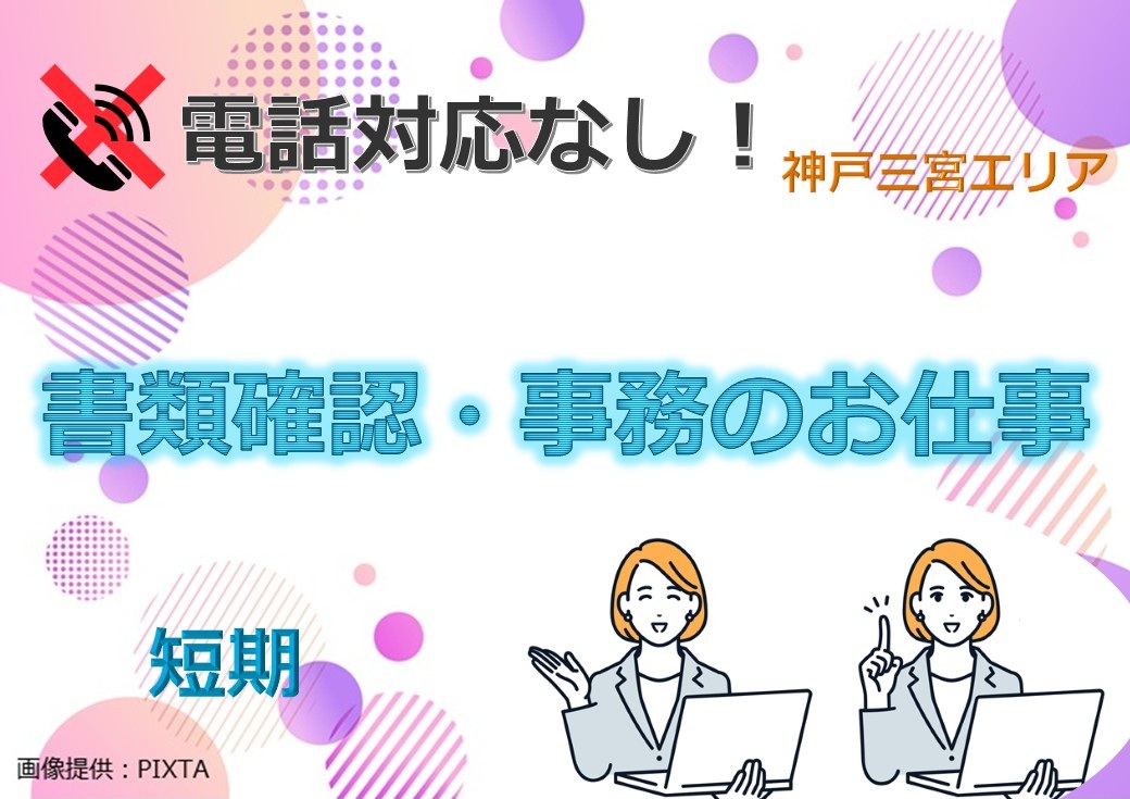 <期間限定>2月末までの短期&事務★電話対応なし★書類不備確認のお仕事【神戸三宮】