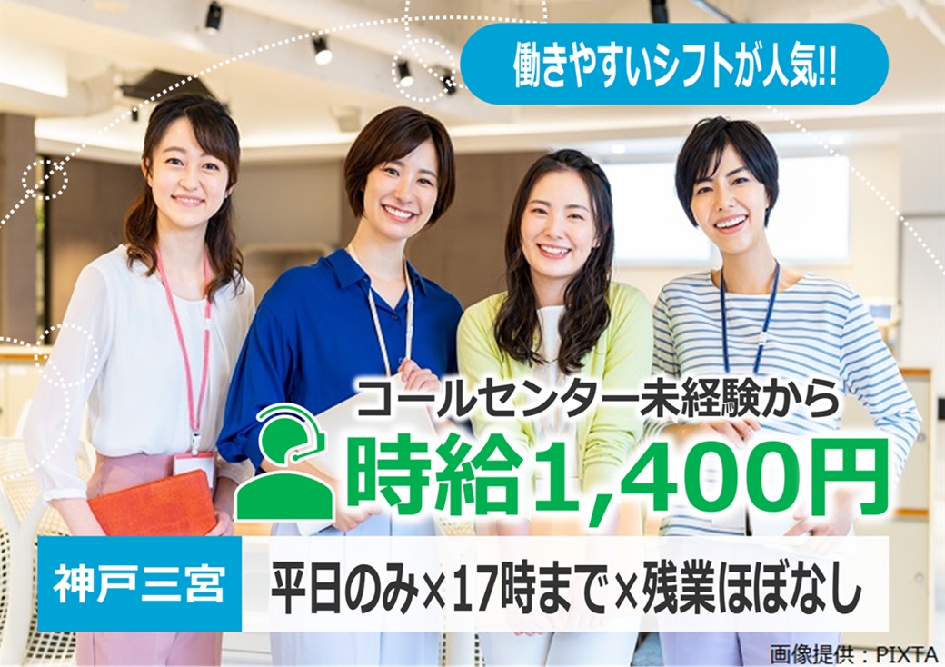 \土日祝休み×17時まで/駅チカ徒歩5分♪大手メーカーの問合せ対応(電話・チャット)【神戸三宮】