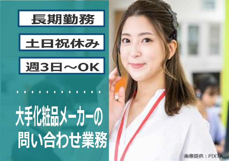 【長期・土日祝休み】大手化粧品の注文受付/週3日~/車通勤OK 大分