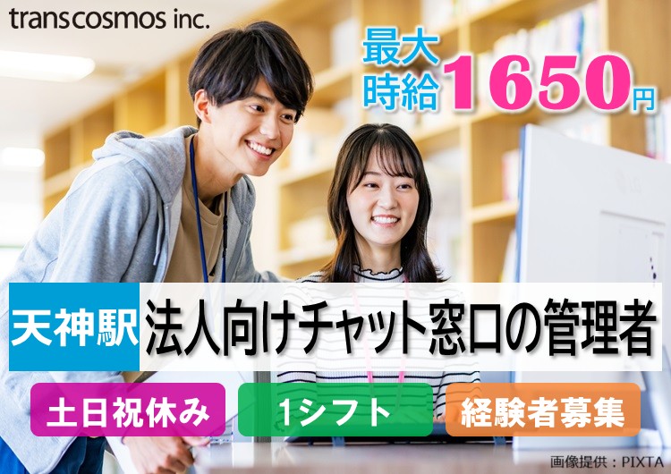 最大時給1,650円|法人チャットサポート窓口の管理者|土日祝休み|各種設定・操作に関するお問い合わせ対応@天神駅