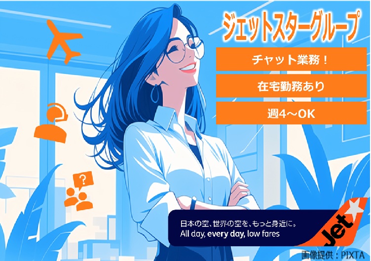 在宅勤務可!|ジェットスターグループでのチャット対応|時給1,250円|週4日~OK|博多駅チカ徒歩3分